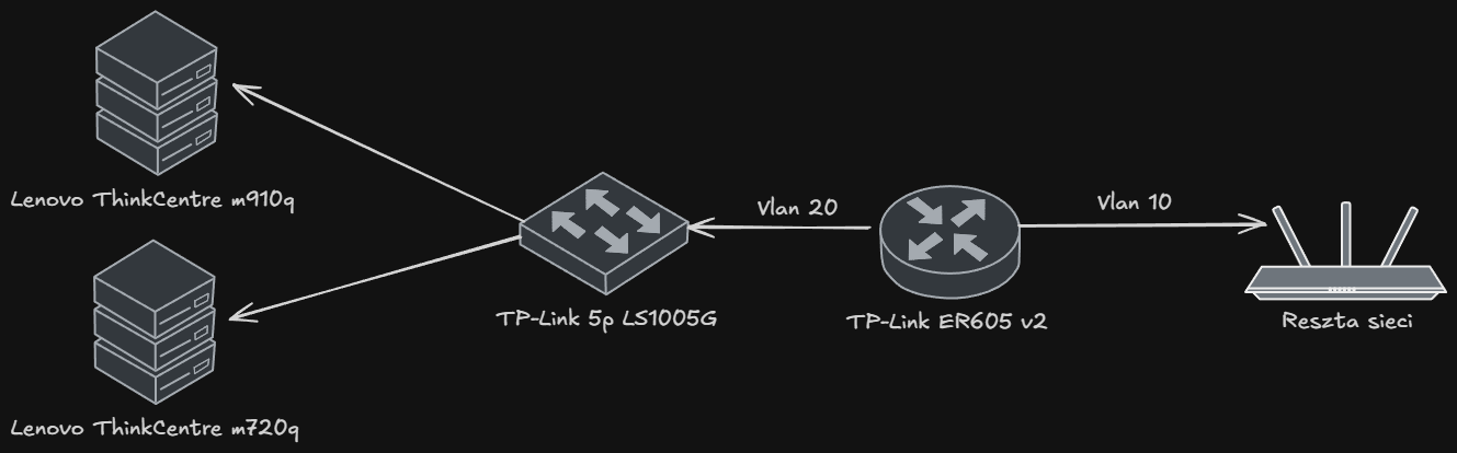 - Router TP-Link ER605 v2 pełni funkcję bramy sieciowej.