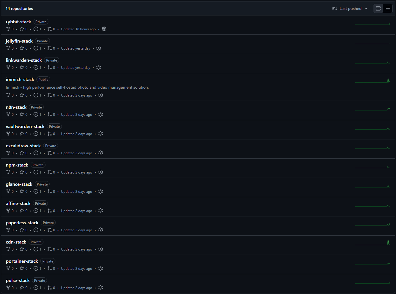 Dlatego teraz każda usługa, która jest hostowana w Dockerze, ma własne repozytorium na GitHubie.