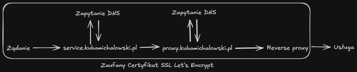 Każda usługa w moim homelabie ma przydzieloną własną subdomenę, wraz z certyfikatem SSL Let's Encrypt.